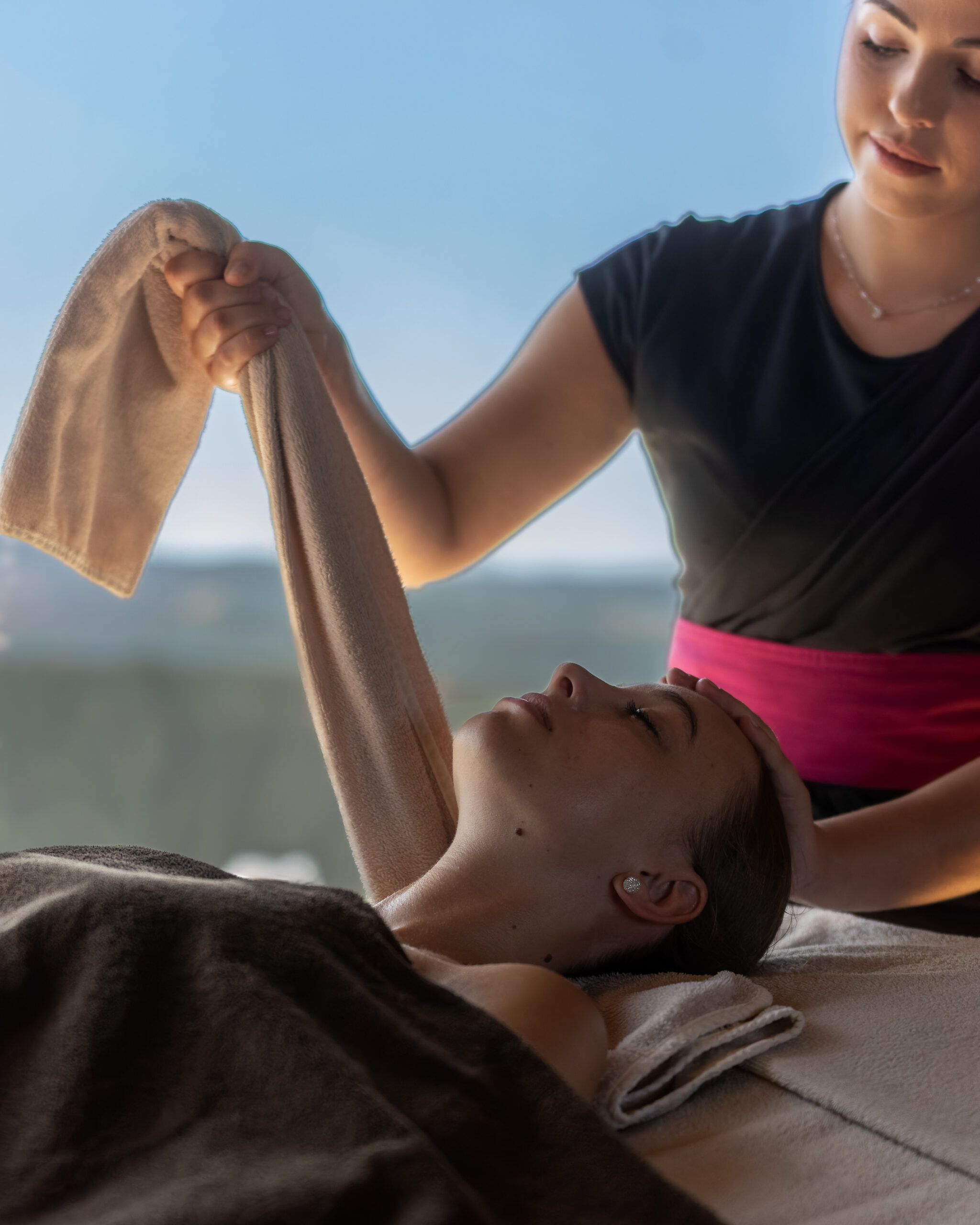 Créé par David Grand, ce soin rend hommage à Régis Marcon, notre chef emblématique, et s’inspire de ses voyages à travers le monde. Véritable odyssée sensorielle, il réunit différentes techniques holistiques venues des quatre coins du globe : balinaises, suédoises, californiennes, shiatsu, thaï stretch et traditionnelles indiennes. Ce rituel complet, pratiqué sur l’ensemble du corps grâce à une huile de macération d’arnica et son hydrolat de Mélisse, invite au lâcher-prise total par un enchaînement fluide de manipulations profondes.